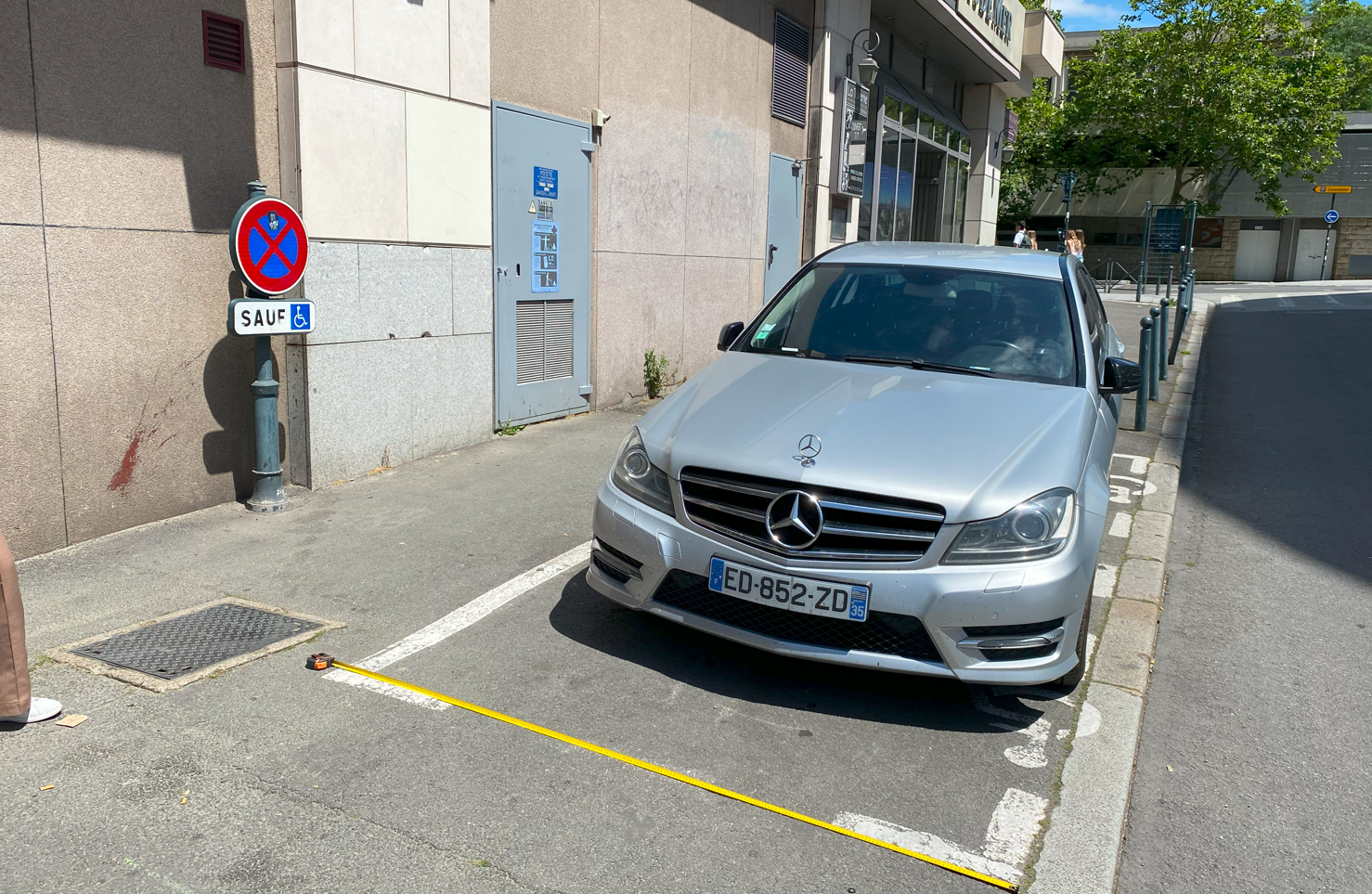 - Place trop étroite (3,00 m au lieu de 3,30 m) → Non conforme