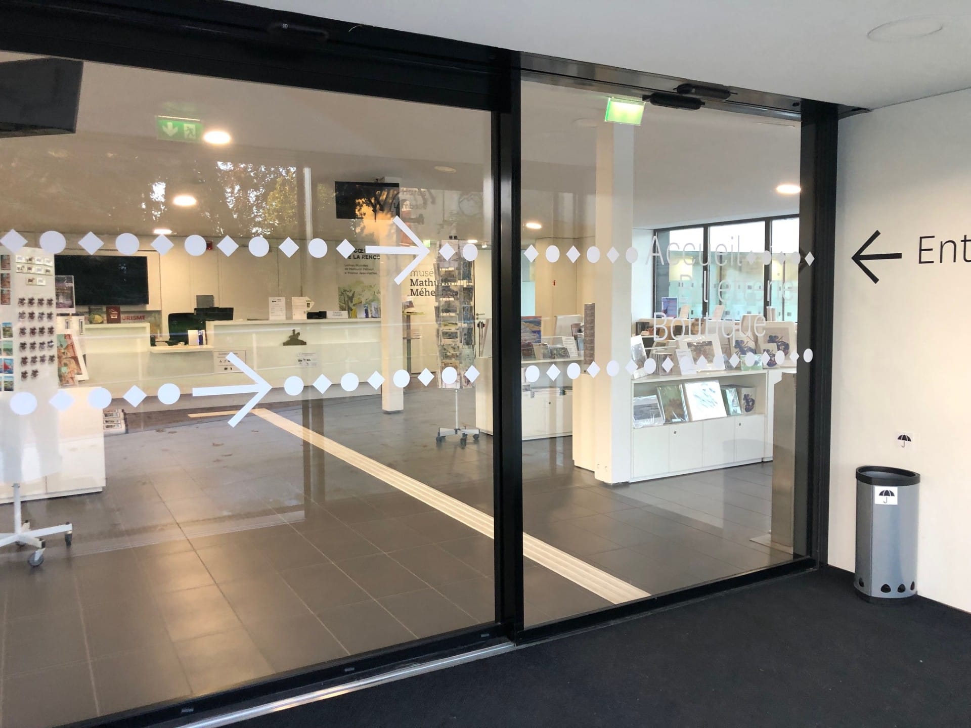 - Toutes les portes vitrées de l'établissement (entrées, séparations intérieures, accès terrasses, etc.)